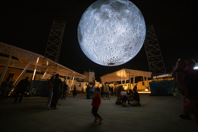 13일 키프로스 라르나카에서 영국 유명 설치작가인 루크 제람의 공공미술 프로젝트 ‘달의 미술관(Museum of the Moon)’이 전시되고 있다.