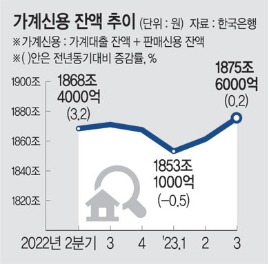3분기 가계 빚 1875조6000억