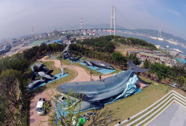 울산 남구 매암동 장생포 ‘고래문화마을’(사진)에는 다양한 종의 고래가 전시돼 있다. 몸길이 30m의 대왕고래를 비롯해 귀신고래(16m), 밍크고래(8.6m) 등 6종 11점의 고래 조형물이 관람객을 맞이한다. 고래 조형물 앞에는 각 종에 대한 자세한 설명이 있다.