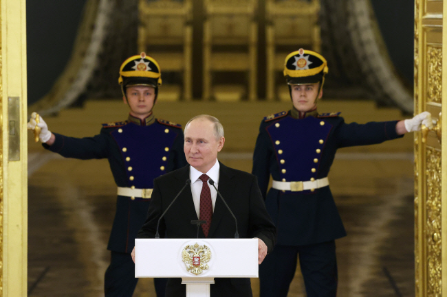 블라디미르 푸틴 러시아 대통령이 4일 모스크바 크렘린궁에서 열린 이도훈 신임 주러 한국대사 등 21개국 대사 신임장 제정식에 참석해 발언하고 있다.