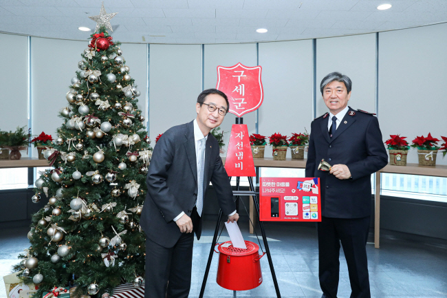 조용일(사진 왼쪽) 현대해상 대표는 5일 서울 서대문구 충정로 구세군빌딩에서 구세군 자선냄비에 성금 3억 원을 전달했다.