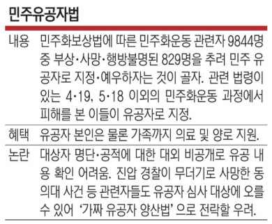 더불어민주당이 국민 혈세로 운동권 인사와 그 가족에게까지 의료·양로 지원을 해주는 내용의 민주유공자법(민주유공자 예우에 관한 법률안)을 강행 처리한 것에 대한 비판 목소리가 일파만파 확산하고 있다. 민주당은 특히 국민의힘의 안건조정위 회부 요구에 비교섭단체 몫으로 강성희 진보당 의원을 넣어 약 1시간 만에 속전속결로 법안을 통과시켰다. 167석 과반 의석을 앞세운 ‘꼼수’로 21대 국회 마지막까지 국회법상 숙의 제도인 안건조정위를 무력화시키고 있다는 비판이 나온다.