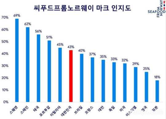 지난 9월 기준으로 한국인의 노르웨이 연어 인지도는 92%에 달한다. 한국에 수출되는 노르웨이 수산물 중 최고의 인지도다. 해당 설문이 진행된 국가들중에서도 최고 수치다.