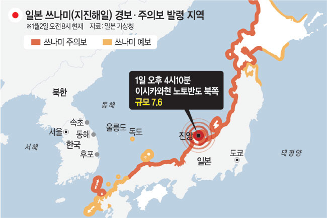 ■ 日 새해 첫날 규모 7.6 강진