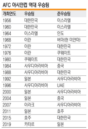 중동 최강 이란은 아시안컵 통산 41승(19무 8패)으로 최다승 1위다. 전적을 승점으로 환산했을 때 142로 역시 1위다. 최다승과 최다 승점 2위 한국(36승·승점 122)과 간격이 크다. 이란은 특히 3차례 결승에 진출해 모두 우승을 차지했다. 지난 시즌 포르투갈 리그 득점왕(22골) 타레미 메흐디(포르투)와 유럽에서 잔뼈가 굵은 아즈문 사르다르(AS 로마)로 구성된 공격진이 경계대상이며, 이들을 앞세운 이란은 최근 13경기 연속 무패(11승 2무)를 달리고 있다.