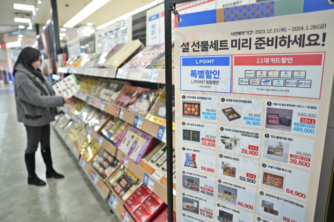지난달 21일부터 지난 17일까지 롯데마트와 슈퍼의 선물세트 예약판매 매출은 지난해 예약판매 동일 기간(2022년 12월 1∼29일)과 비교해 2배가량 늘었다.