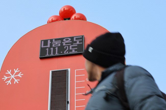 사랑의열매 사회복지공동모금회가 주최한 ‘희망 2024 나눔캠페인’ 차원에서 서울 광화문광장에 설치된 ‘사랑의 온도탑’ 나눔온도가 1일 111.2도로 표시돼 있다. 모금회는 “지난해 12월부터 올해 1월 말까지 총 4835억 원을 모금해 역대 최고를 기록했다”고 밝혔다.