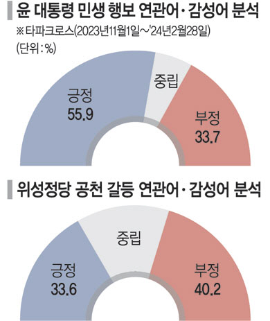 더불어민주당 이재명 대표 등 야권에서 윤석열 대통령의 전국 단위 민생 행보와 잇단 정책 발표를 두고 “불법 선거운동”이라고 비판하고 있으나, 빅데이터를 통해 나타난 유권자의 인식은 긍정 담론이 부정 담론을 압도하는 것으로 나타났다.