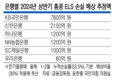 ‘홍콩 H지수 주가연계증권(ELS)’ 분쟁조정기준안(배상안)이 발표되면서 대책 마련에 들어간 은행들이 금융 당국이 예상한 20∼60%보다 낮은 20∼40% 수준으로 배상비율을 추산하고 있는 것으로 전해졌다. 금융 당국의 압박에 은행들이 배상 금액 산출에 속도를 내고 있지만, 배임 논란과 실적 등 경영과 직결된 문제에 맞닿아 있어 해결책을 찾기가 쉽지 않은 분위기다. 손실을 본 투자자들 역시 이번 배상안에 만족할 수 없다며 반발하면서도 민사소송 진행 시 5년 이상이 걸릴 수 있다는 현실적인 문제에 고민하고 있다.