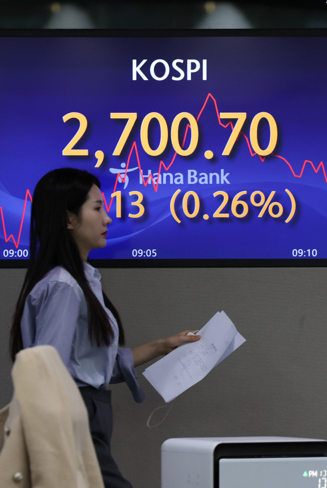 14일 코스피 지수가 전 거래일보다 4.8포인트(0.18%) 오른 2698.37로 거래를 시작한 가운데, 서울 중구 하나은행 딜링룸에서 딜러들이 업무를 보고 있다. 이날 서울 외환시장에서 원·달러 환율은 전 거래일보다 0.3원 내린 1314.2원에 거래를 시작했다.