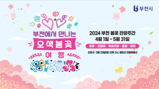 부천시는 오는 23일 원미산 진달래동산에서 봄꽃 관광 주관 선포식을 열고 관광 명소를 소개할 예정이다.