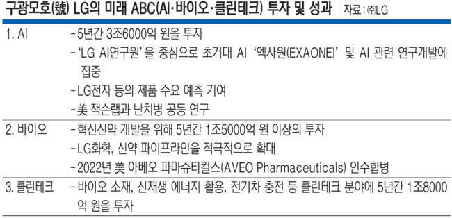 AI, 바이오 등을 키우려는 구 회장의 철학은 “AI가 모든 산업 분야의 패러다임 전환을 이끌 미래의 게임 체인저”라고 밝혔던 지난해 8월 미국 보스턴과 캐나다 토론토 출장에서 상징적으로 파악할 수 있다. 당시 그는 “AI를 통해 새롭게 만들고자 하는 고객가치, 이를 통해 사업에서 얻고자 하는 바를 보다 진지하게 고민하고 치열하게 생각해 나가야 한다”면서 AI와 고객의 가치라는 화두를 연결했다.