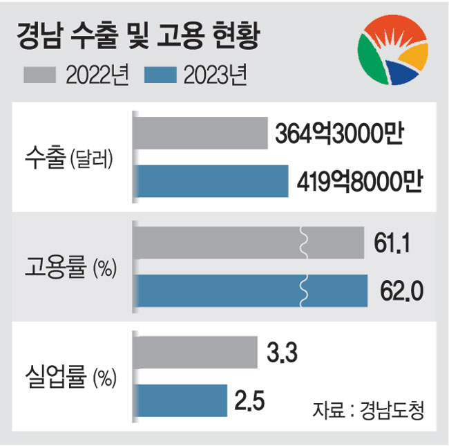 침체했던 제조업은 주력 산업인 방산 수출 호조와 원전산업 생태계 복원 등에 힘입어 크게 개선됐다. 특히 지난 정부에서 고사 위기에 놓였던 원전산업이 다시 활기를 찾은 것은 경남도의 노력이 컸다. 세계적으로 주목받고 있는 K-방산의 생산능력을 확장하기 위한 창원 제2국가산업단지(330만㎡) 조성도 확정했다. 또 거가대교 휴일 통행료 20% 인하, 마창대교 출퇴근 시간 할인, 응급실 ‘뺑뺑이’를 없애기 위한 전국 최초의 응급의료 종합 컨트롤타워 구축, 도청공무원·경찰관·소방관이 합동 근무하는 재난안전컨트롤타워 구축 등이 주요 성과다. 관광분야에서는 1조1000억 원 규모의 남부권 광역관광개발사업을 정부 계획에 반영했다.