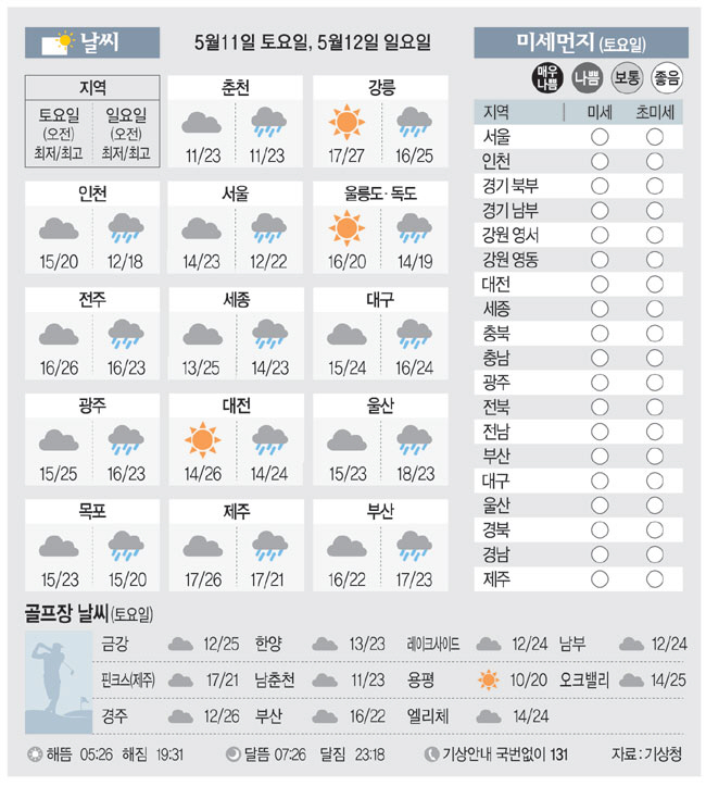 [날씨이야기] 5월11일 토요일, 5월12일 일요일