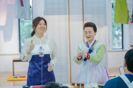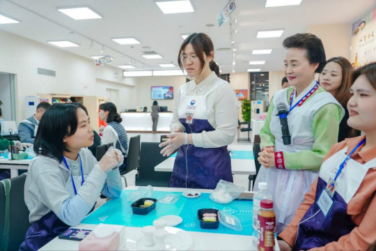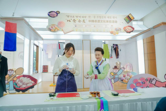 중국 상하이에서 열리고 있는 한중무형문화유산 교류전 ‘음식 속에 담긴 사계절’의 다양한 모습들. 상하이 한국문화원과 서울의 떡박물관이 주최한 이번 행사는 떡만들기가 국가무형문화재가 된 것을 기념하기 위한 것이다. 장미란 문화체육관광부 차관이 참석해 전시를 둘러보고 체험행사에 참여했으며, 한·중 대학생들과 대화를 나눴다. 주최 측인 떡박물관의 윤숙자 관장(한국전통음식연구소 대표)은 "전시가 품격 있게 진행됐으며, 체험 행사와 강연회, 시식회 열기가 뜨거웠다"라며 "상하이에 우리 식문화를 알리게 돼서 보람이 크다"라고 했다. 이 행사는 6월 29일까지 상하이에서 열리며, 이후 난징으로 옮겨 지속한다. 사진=전통문화연 제공.