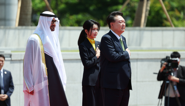윤석열 대통령의 부인 김건희 여사가 29일 오전 열린 무함마드 빈 자이드 알 나하얀 아랍에미리트(UAE) 대통령과의 공식 환영행사에도 참석했다. 지난 16일 캄보디아 훈 마넷 총리 내외와의 오찬에 공식 참여하며 153일 만에 공개 행보를 시작한 김 여사는 하반기 열리는 주요 외교 행사에도 계속 참여할 것으로 보인다.