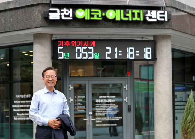 구는 지난 4월 독산1동 금하마을에 탄소중립 문화를 널리 알리는 지역사회 거점 공간으로 연면적 477㎡, 지상 5층 규모의 ‘금천 에코·에너지센터’를 개관했다. 센터에는 지구 온도가 산업화 이전 시기보다 1.5도 오르는 시점까지 얼마나 남았는지를 표시하는 기후위기 시계와 10t의 빗물을 저장할 수 있는 빗물저금통 등이 설치돼 있다.