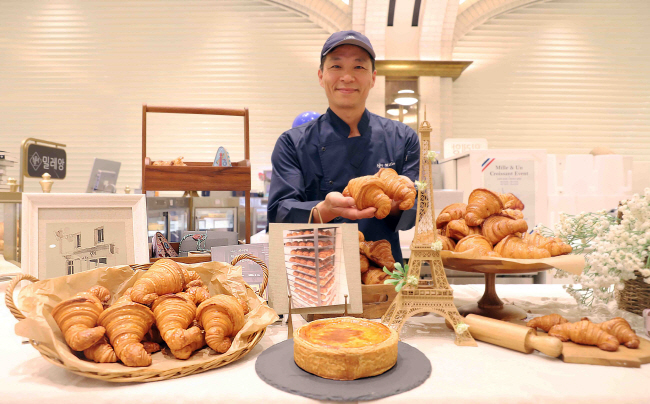 20일 서울 서초구 신세계백화점 강남점에 입점한 프랑스 베이커리 ‘밀레앙’의 서용상 제빵사가 크루아상을 소개하고 있다.
