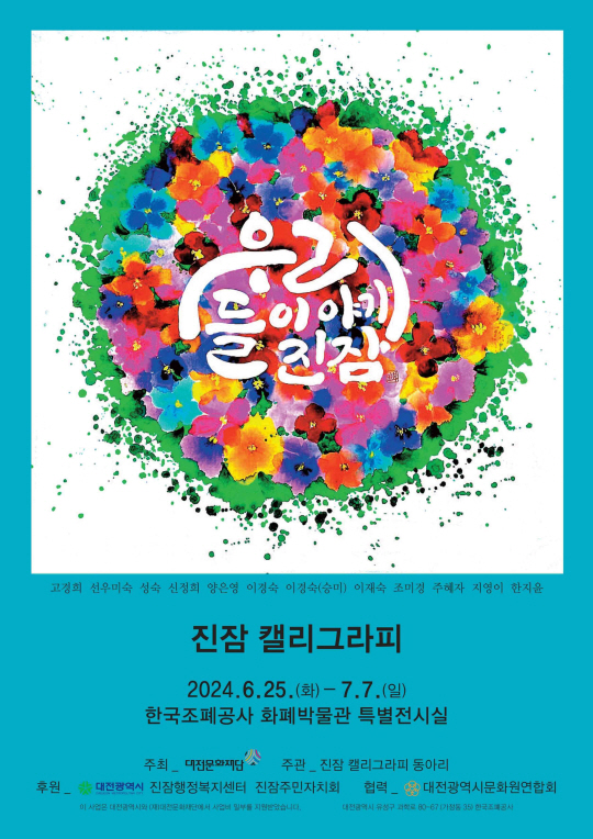 이번 전시회는 대전시 유성구 진잠동 주민자치회에 개설된 캘리그라피 동호회 회원전으로, 동호회는 2024년 대전문화재단 생활문화 지원 사업에 신규단체로 선정된 바 있다.