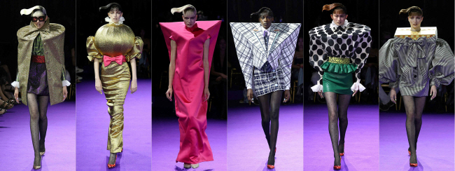 26일(현지시간) 프랑스 파리에서 열린 파리 패션 위크 ‘오트 쿠튀르 가을·겨울 2024 쇼’에서 모델들이 빅토르&롤프의 작품을 선보이고 있다.
