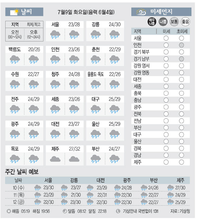 [날씨이야기] 7월9일 화요일(음력 6월4일)