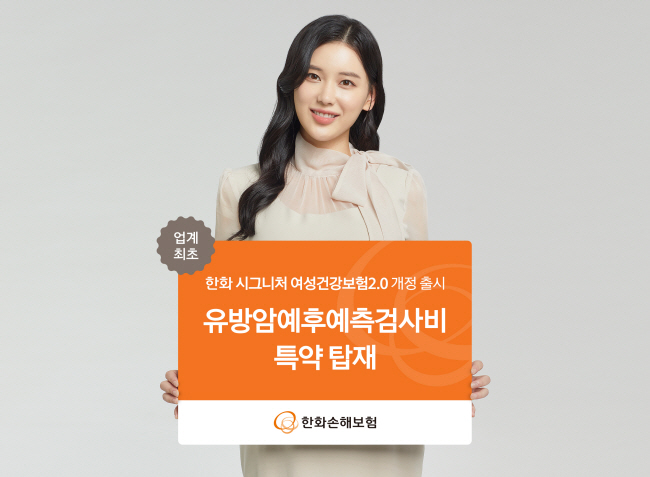 한화손해보험은 여성암 발병률 1위인 유방암의 검사부터 치료, 사후관리까지 이르는 전 과정을 보장하는 ‘한화 시그니처 여성건강보험 2.0’(사진)개정 상품을 8일부터 판매한다고 밝혔다.