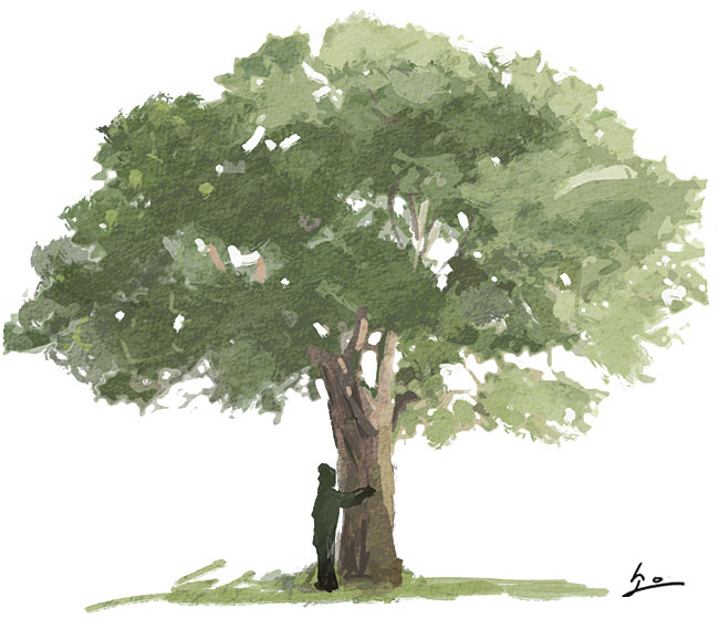 템플스테이 사흘째 정오쯤, 절에서 가까운 숲속에 들어가 아름드리나무를 끌어안았다. 녹색 향연이 한창인 숲속에서 이마에 닿는 공기는 차가웠다. 귀에 들리는 건 오직 새소리와 바람 소리뿐. 팀 잉골드는 “나무들의 현존을 마주하고 있으면 분명 살아 있다는 느낌이 훨씬 더 생생해진다”고 말한다. 숲속에서 기분이 좋아지는 이유가 거기에 있었다. 여름 숲속은 가지를 뻗고 잎사귀를 피워낸 나무들로 깊고 어둡다. 나무들은 산소를 뿜어내며 바람이 불 때마다 연신 살랑거린다. 나무들은 그렇게 우리에게 말을 건넨다. 나무를 끌어안은 채 눈을 감고 들숨과 날숨에 의식을 집중한다. 닫힌 백회혈(百會穴)이 열리는 느낌. 그 열린 백회혈을 타고 낯선 기운이 쏟아져 들어온다.