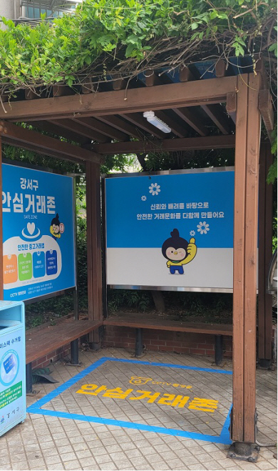 구는 안심거래존을 등촌3동·화곡1동·발산1동 주민센터 등 3곳에 설치하고 시범운영에 들어갔다. 등촌3동과 화곡1동은 동주민센터 정문 입구에, 발산1동은 정문 옆 정자 안에 조성됐다.