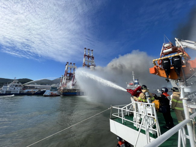 통영 해상 크레인선 화재