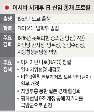 30일 니혼게이자이(日本經濟)신문과 산케이(産經)신문 등에 따르면 이시바 총재는 이르면 10월 9일 중의원을 해산할 방침이다. 이를 위해 오는 4일 중의원과 참의원에서 취임 관련 연설을 한 뒤 중의원 해산 전에 진행하는 각 당 대표 질문 일정을 7~9일 가질 예정이다. 이를 마치면 중의원을 해산하고, 15일에 선거 공시를 한 뒤 27일에 선거를 치른다는 계획이다.