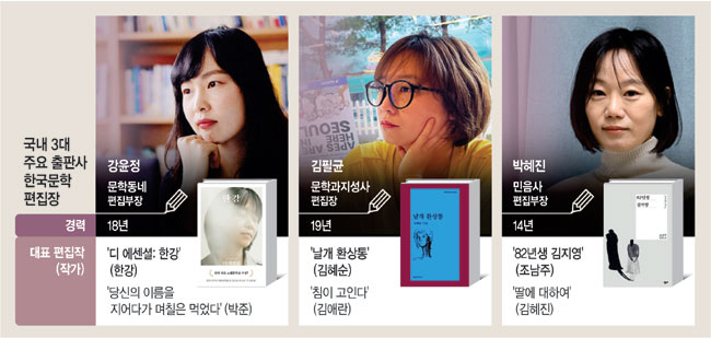 ‘노벨상 콤플렉스’를 넘어선 한국문학, 이제 국내 출판계는 그 이후를 바라보고 있다. ‘포스트 한강’에 대한 관심이 커지는 가운데 출판계에서는 우리 소설이 가진 ‘다채로움’에 대한 믿음을 이야기하고 있다. ‘디 에센셜: 한강’과 ‘날개 환상통’, ‘82년생 김지영’까지 국내 주요 출판사에서 근무하며 작품의 편집을 이끌었던 한국문학의 편집자들에게 한국문학의 현재와 미래에 대해 들어봤다.
