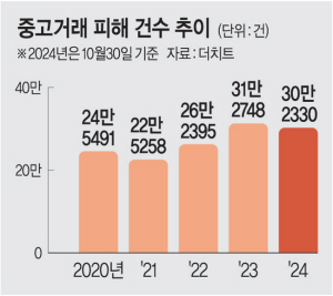 ‘온라인 중고거래 사기’가 올해 30만 건을 넘어 역대 최다를 기록할 전망이다. 실용적 소비를 지향하는 젊은 세대 사이에서 중고거래가 보편화했지만 ‘가짜 사이트·안전거래’ 유도 등 사기 수법도 진화하면서 피해가 커지고 있다. 중고거래 사기를 발견하는 즉시 계좌 차단 등 사후조치를 할 수 있도록 제도적으로 보완해야 한다는 목소리도 나온다.