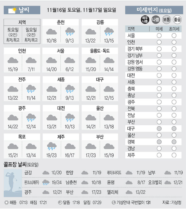 [날씨이야기] 11월16일 토요일, 11월17일 일요일