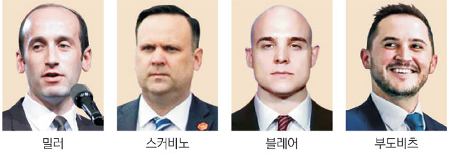 25일 미국 언론 등에 따르면 스티븐 밀러 전 백악관 선임보좌관과 댄 스커비노 전 백악관 소셜미디어국장은 트럼프 1기 행정부에 이어 2기 행정부에서도 백악관에서 일하게 됐다. 밀러는 트럼프 당선인의 핵심 공약 중 하나인 불법 이민자 대규모 추방 작전을 설계한 인물이다. 내년 1월 트럼프 2기 행정부가 출범하면 남부 국경 폐쇄와 불법 체류자 대규모 추방을 주도할 것으로 예상된다. 밀러는 선거 기간 인터뷰에서 2기 행정부에서 추방 규모를 10배로 늘려 연간 100만 명 이상의 추방을 목표로 할 것이라고 밝힌 바 있다. 39세의 밀러 전 보좌관은 1기 행정부에서 이민 제한 정책을 수립하는 데도 역할을 했다. 트럼프 퇴임 후에는 ‘아메리카 퍼스트 리걸(America First Legal)’이라는 자문 그룹을 꾸렸다. 이 단체는 헤리티지재단이 만든 ‘프로젝트2025’에도 역할을 한 것으로 알려졌다.