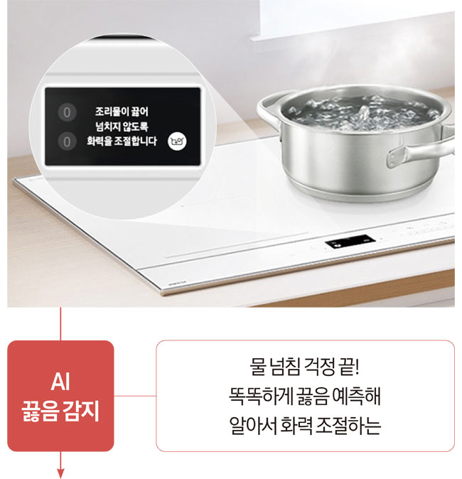 ‘AI 끓음 감지’는 요리에 투입되는 시간뿐만 아니라 인덕션 관리에 필요한 시간까지 효율적으로 줄여준다. 특히 간편식 국이나 탕 조리 시에 이 기능을 활용하면, 시간과 화력을 자동으로 조절해주기 때문에 국물 요리도 한층 쉽고 편리하게 준비할 수 있다.