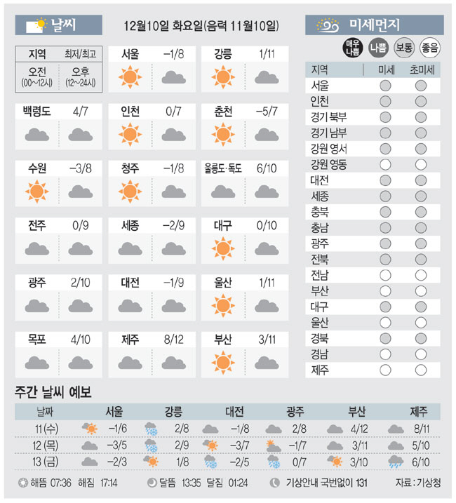 [날씨이야기] 12월10일 화요일(음력 11월10일)