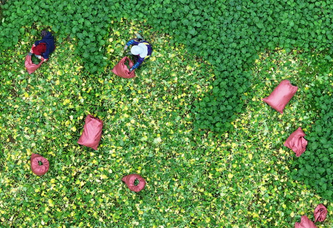 11일 오전 제주시 애월읍 고내리의 한 밭에서 농민들이 유채나물을 수확하고 있다.