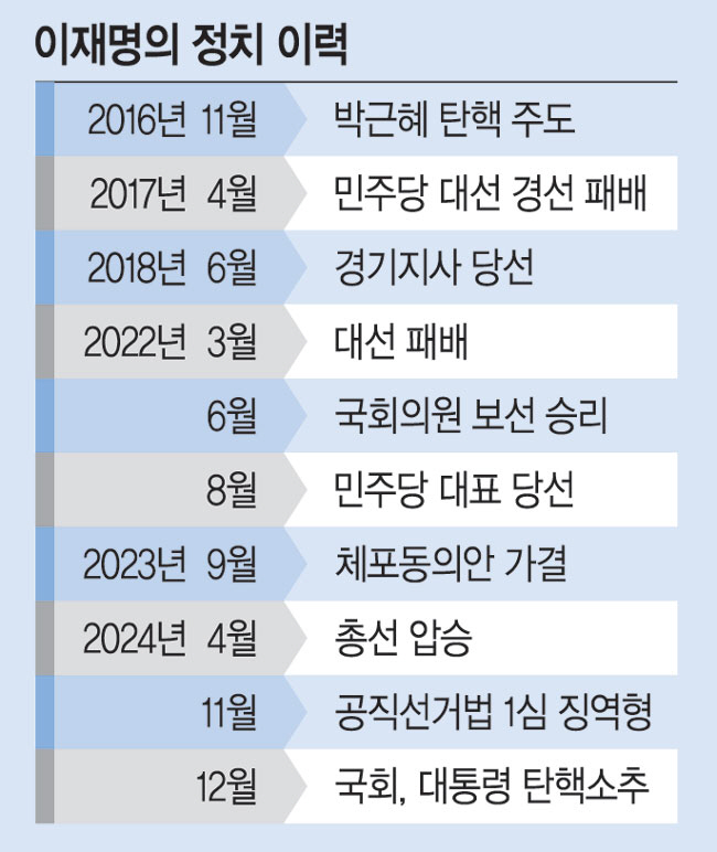 윤 대통령 탄핵 심판 종결 전 이 대표의 공직선거법 위반 상급심 재판 결과가 나오고 당내 다른 대권 도전자들의 움직임이 가시화된다면, 지금의 정치구도가 단박에 바뀔 가능성도 배제할 수 없다. 정치변동은 순식간에 찾아온다.