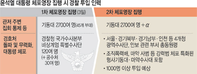 박 처장이 예상을 깨고 이날 출석하면서 대규모 인원을 투입한 체포영장 집행을 준비하던 공수처와 경찰의 셈법도 복잡해졌다. 특수단은 서울·인천·경기북부·경기남부 등 수도권 경찰청에 형사기동대 및 안보수사대 수사관 동원을 요구하는 공문을 전달했는데, 동원 대상자와 특수단 인원을 합하면 1000명을 넘어선다.