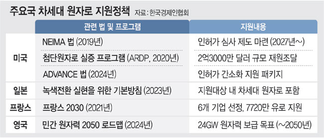 차세대 원자로 개발에 대한 각국의 주도권 경쟁도 본격화할 전망이다. 미국은 차세대 원자로 시스템 개발을 위해 필요한 규제를 개선하고 있으며, 일본과 프랑스 또한 선제적으로 인허가 제도를 정비하고 예산 지원에 나서고 있다.
