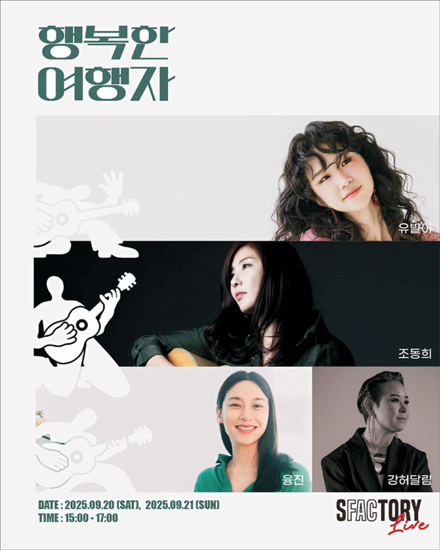 성수동 담벼락에 인물사진이 붙었는데 수배자들(?) 표정이 가을 햇살처럼 해맑다. 4인 4색의 ‘행복한 여행자’(음악회 제목) 명단은 가나다순으로 강허달림, 유발이, 융진 그리고 조동희. TV에 자주 나오진 않지만 일단 그 음악에 홀리면 하릴없이 포로가 되고 마는 실력파 뮤지션들이다. 나도 주저앉아 이틀 동안 구금되었다.