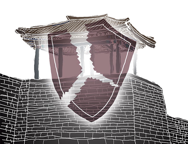 풍수의 명당 논리에 따라 터를 잡아 만든 만월대 궁궐은 진입로의 시작점부터 보이는 하늘-송악산-궁궐의 3단계 상징 풍경에 천명사상(天命思想)을 담아 임금의 권위를 표현했다. 여기서 압도적인 웅장함과 화려함은 송악산이 담당하며, 궁궐은 그런 송악산과 일체감을 연출할 수 있도록 상대적으로 웅장하지도 화려하지도 않게 지었다. 그런데 만약 높고 웅장한 성곽과 성문을 지나 그런 궁궐을 봤다면 어떤 느낌일까? 짐작하겠지만, 궁궐의 모습이 훨씬 더 초라하게 보일 수밖에 없다. 이것이 개성도성에서 웅장한 성곽과 성문을 만들지 않은 까닭이다. 이는 고려 시대 문화유전자로 정착해 고려 말부터 축조한 모든 성곽에 적용되면서 조선은 방어력 없는 성곽이 흔한 특이한 나라가 됐다. 물론 산성은 제외다.