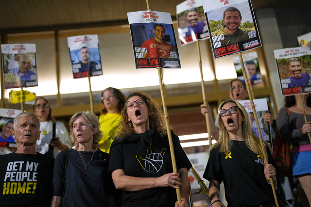 가자지구 억류 중 사망한 인질들의 유족들이 14일 이스라엘 텔아비브 ‘인질 광장’에서 시신 인도를 촉구하는 시위를 벌이고 있다.