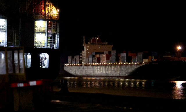 지난달 23일 중국 저장성 닝보시 저우산항을 출발한 중국 컨테이너선 이스탄불브리지호가 13일 밤 늦게 목적지인 영국 펠릭스토 항구에 도착하고 있다. 지구온난화로 수에즈 운하 노선에 비해 운송 기간이 절반인 북극항로가 사상 처음으로 열리면서 글로벌 물류 지형에 대변화가 일어날 것이라는 전망이 나온다.