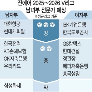 남자부는 지난해 컵대회와 정규리그, 챔피언결정전까지 모두 차지한 현대캐피탈이 여전히 강팀으로 분류된다. 여기에 대한항공이 가장 큰 위협이 될 대항마라는 평가다. 삼성화재가 1약으로 구분되는 가운데 KB손해보험, 한국전력, OK저축은행, 우리카드는 치열한 중위권 싸움을 펼칠 것이라는 예상이다.