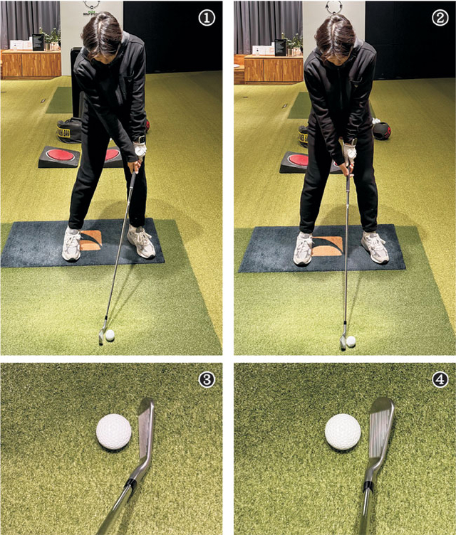 이러한 셋업은 임팩트 때 큰 영향을 주게 된다. 로프트를 세워서 잡을 경우 사진③처럼 헤드가 닫히면서 매우 낮게 왼쪽으로 휘는 공이 발생하게 된다. 일반적인 셋업 때의 헤드 상태(사진④)와도 확연하게 구분된다.