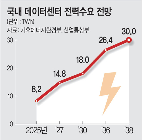 정부가 편성한 내년 예산안에서 ‘AI 3대 강국 도약’을 위한 예산은 10조1000억 원으로 관련 예산은 올해보다 3배 이상 늘었다. 이재명 대통령이 ‘AI 고속도로’ 구축을 천명했지만, 실제 AI에 필요한 전력을 안정적으로 수급하기엔 전력 인프라가 부족한 상황이다. 지난 2월 확정된 ‘제11차 전력수급기본계획’에 따르면 2023년 5테라와트시(TWh)였던 데이터센터 전력 소비는 2027년 14.8TWh, 2038년에는 30TWh로 늘어날 전망이다. 한국형 원전 APR1400의 출력이 1.4GW급임을 감안하면 3기의 연간 발전량과 맞먹는 셈이다.