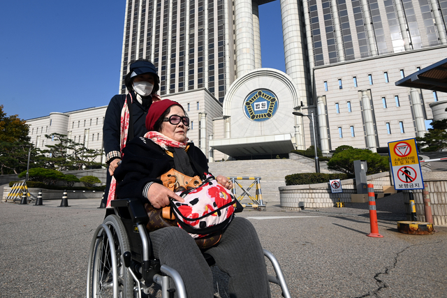 1980년 광주 5·18 민주화운동 당시 계엄군에 성폭력 피해를 당한 한 시민이 7일 오전 서울 서초구 서울중앙지법으로 들어서고 있다. 피해자들의 국가 상대 손해배상 소송 첫 공판이 이날 열렸다.