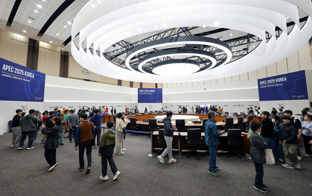 9일 경북 경주화백컨벤션센터(HICO)에서 열린 2025 아시아태평양경제협력체(APEC) 정상회의 시민 공개관람에서 시민과 관광객들이 정상회의장을 둘러보고 있다.
