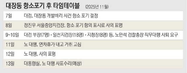13일 법조계에 따르면, 노 대행은 전날 사의 표명 뒤 대장동 항소 포기 결정에 대해 “제가 한 일이 비굴한 것도 아니고 나름대로 우리 검찰을 지키기 위한 행동이었다”고 밝혔다. 노 대행 발언은 내년 10월 검찰청 폐지를 앞두고 최대 현안인 검찰 보완수사권 유지를 위해 정부·여당을 의식한 정무적 판단을 했다는 취지로 해석된다. 노 대행은 항소 포기 5일 만인 12일 오후 사의를 표했다. 그는 사퇴 직전까지도 검찰 위기 상황에서 후임자 없이 물러나는 것이 적절한지를 두고 고심한 것으로 알려졌다.